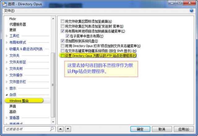 3.去掉默認勾選的可作為FTP站點默認處理程序的選項!