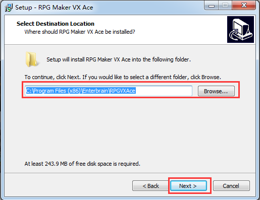 Setup will install RPG Maker VX Ace into the fllowing folder.