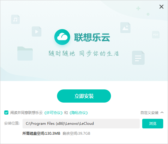 1.到本站下載安裝聯(lián)想樂云,打開安裝程序,點(diǎn)擊自定義安裝