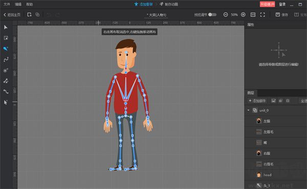 6、骨骼運(yùn)動(dòng)定制:添加骨骼后可操控角色移動(dòng)、旋轉(zhuǎn),曲線骨骼讓動(dòng)畫效果更圓潤(rùn) 。