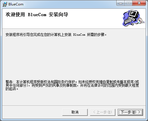 1、從本站獲取 BlueCom 安裝包,打開程序文件,點(diǎn)擊 “下一步” 進(jìn)入安裝環(huán)節(jié)。