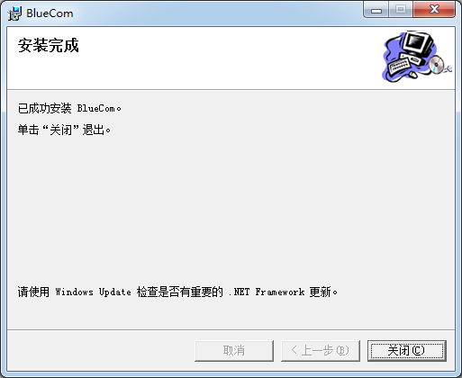 4、安裝完成,點(diǎn)擊 “關(guān)閉”,即可完成 BlueCom 藍(lán)牙管理工具的安裝,隨時(shí)啟用。
