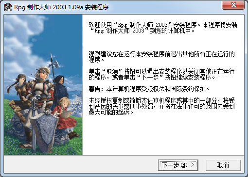 歡迎使用"“Rpe制作大師2003" 安裝程序。本程序?qū)惭bRpg制作大師2003”到您的計(jì)算機(jī)中。