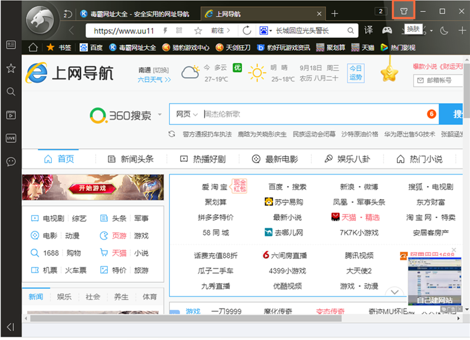 打開獵豹安全瀏覽器,進入界面,點擊右上方的【換膚】按鈕,