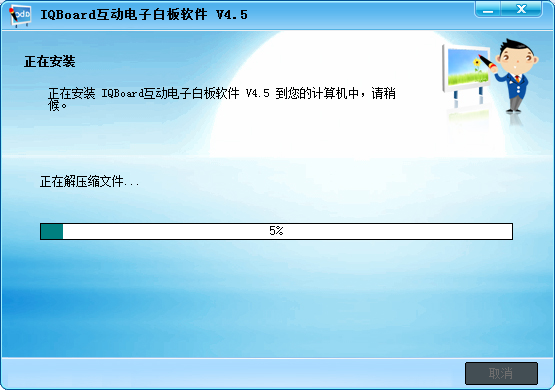 宏裝程序已準(zhǔn)備好將IQBoar d互動(dòng)電子白板軟件V4. 5安裝到您的計(jì)算機(jī)中。