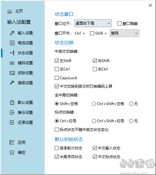 4、在【狀態(tài)設(shè)置】界面,可勾選狀態(tài)窗口、切換及默認(rèn)初始狀態(tài)設(shè)置。