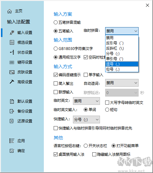 5、Z 鍵功能:勾選 “Z 鍵通配輸入” 實(shí)現(xiàn)非首碼通配;勾選 “特殊符號(hào)輸入”,首碼 z 可輸特殊符號(hào)。