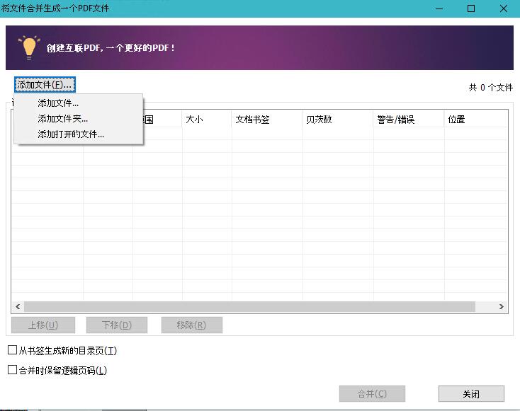 1.打開程序后,點(diǎn)擊文件>創(chuàng)建>合并文件