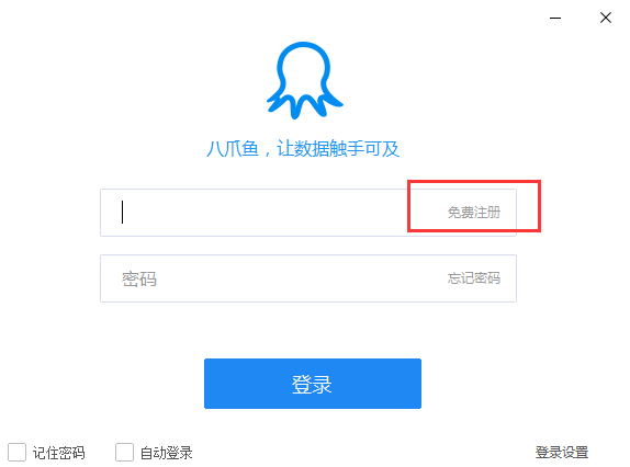 1、啟動八爪魚網(wǎng)頁數(shù)據(jù)采集器,需要先登錄才能使用各項(xiàng)功能。大家直接點(diǎn)擊【免費(fèi)注冊】按鈕注冊一個(gè)帳號。