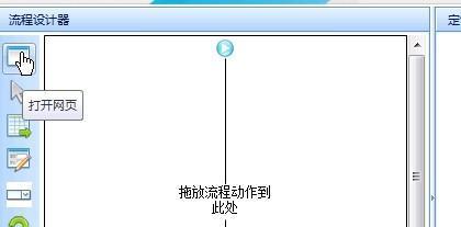 4、進(jìn)到流程配置頁面=>往流程設(shè)計(jì)器中拖入一個(gè)打開網(wǎng)頁的步驟