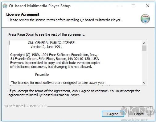 1、下載 Qmmp 壓縮包并解壓,雙擊.exe 文件啟動(dòng)安裝程序,閱讀協(xié)議后點(diǎn)擊【I Agree】。