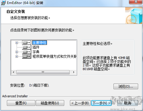 1、在 kk 下載站下載 EmEditor,解壓到當前文件夾,點擊 emed64_20.5.1.msi 進入安裝向?qū)?,點擊 “下一步”。
