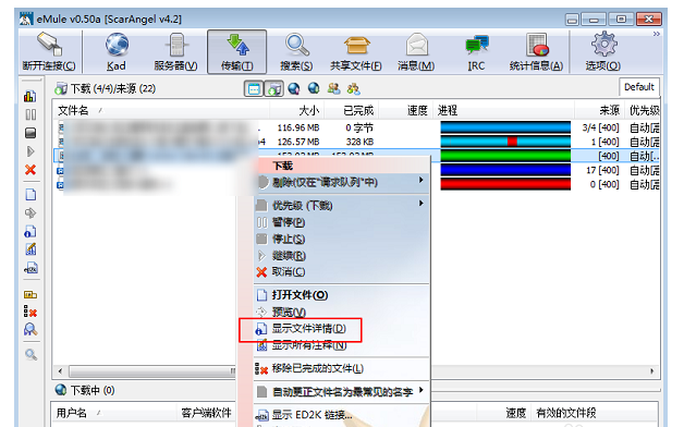 點擊軟件頂部的傳輸,然后右鍵已經(jīng)下載好的文件,選擇顯示詳情,