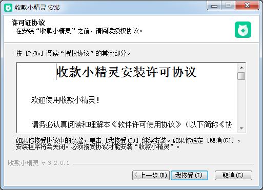 這個(gè)向?qū)⒅敢阃瓿?ldquo;收款小精靈”的安裝進(jìn)程。在開始安裝之前建議先關(guān)閉其他所有應(yīng)用程序。這將”更新指定的系統(tǒng)文件,而不需要重新啟動(dòng)你的計(jì)算機(jī)。