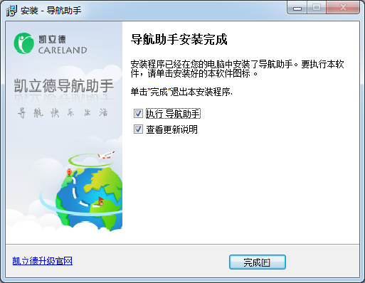 安裝程序已經(jīng)在您的電腦中安裝了導航助手。要執(zhí)行本軟件,單擊完成安裝按鈕即可!