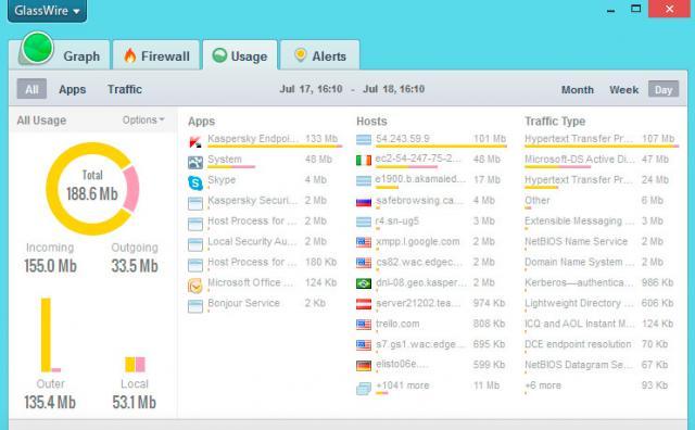 請記牢,GlassWire只追蹤帶寬為它安裝在電子計算機和網絡服務器,并在網絡上并不是總帶寬利用率。