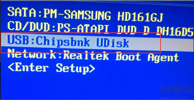 7、將 U 盤插入待重裝電腦,重啟進(jìn)入 BIOS 選擇 USB 啟動(dòng)。