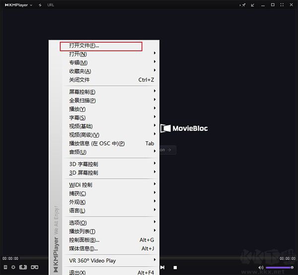 2、鼠標(biāo)右擊播放界面,選擇 “打開文件” 按鈕,添加需要播放的視頻文件;