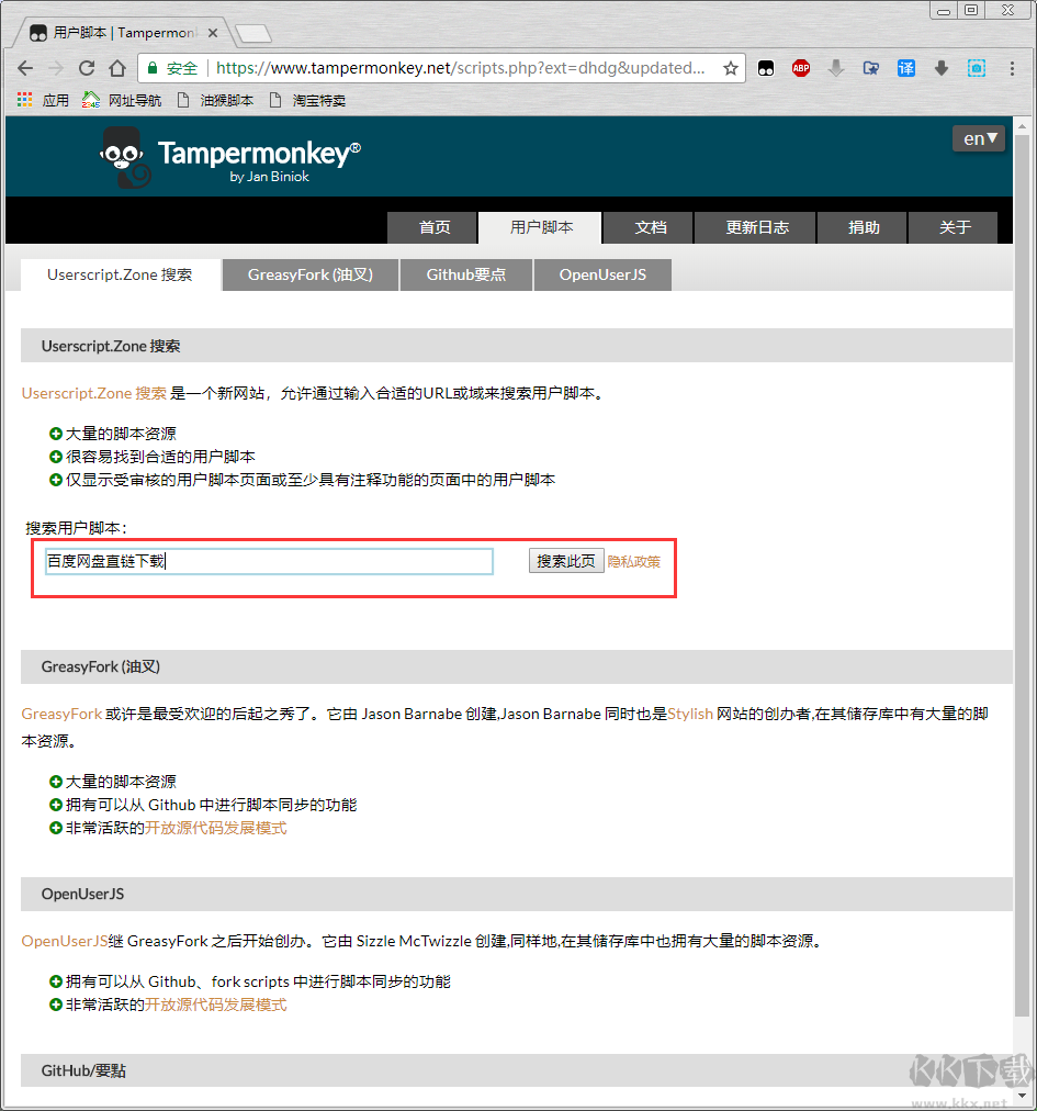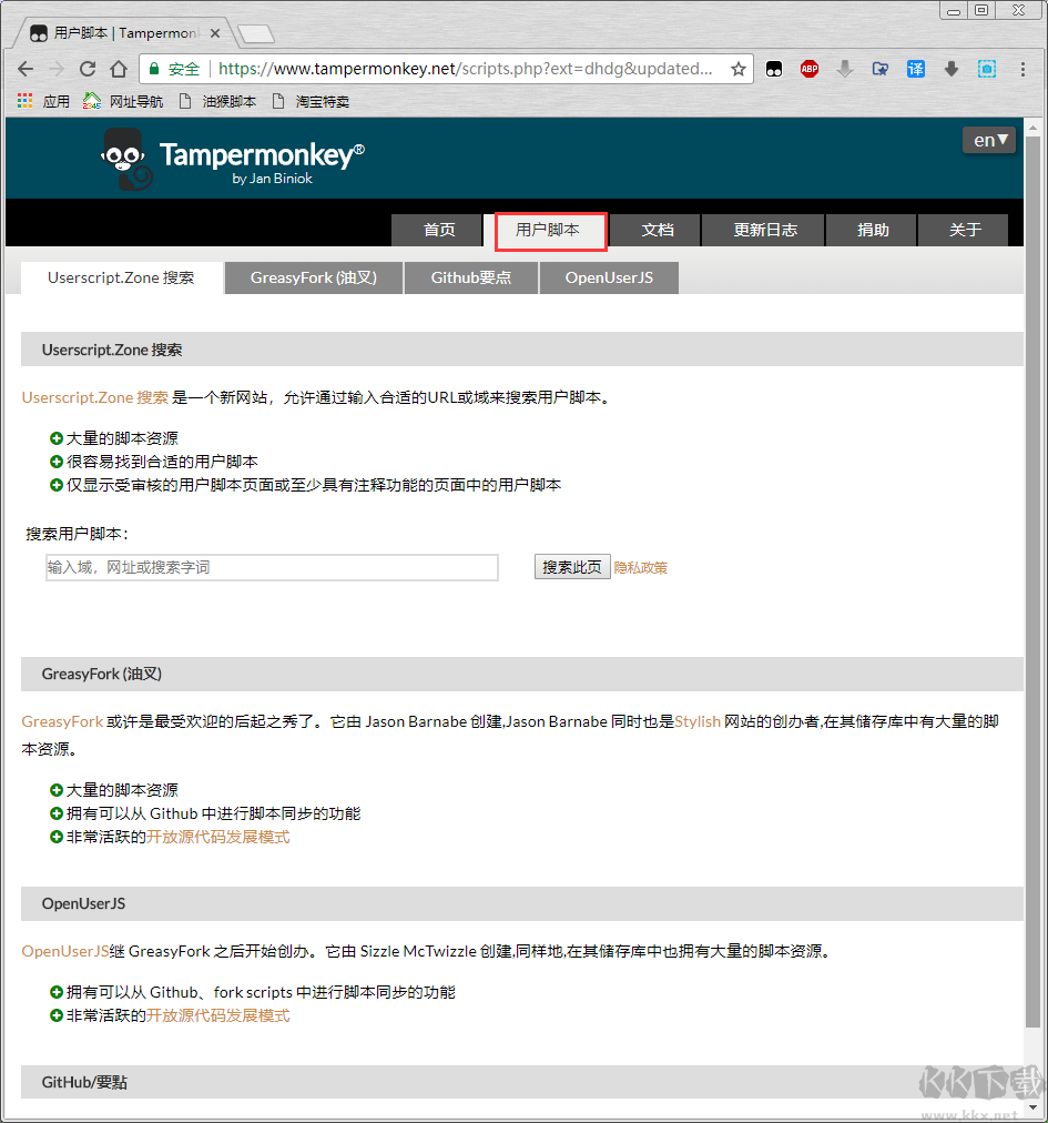2、點擊用戶腳本,可在該頁面搜索你所需要的相關(guān)腳本。