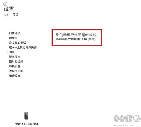 再講“更新”,這選項(xiàng)可以用來更新手機(jī)的系統(tǒng),比較好用,相當(dāng)于推送,雖說作者的手機(jī)是WP7的,但是系統(tǒng)已經(jīng)是最高的了,當(dāng)然只WP7中,如圖