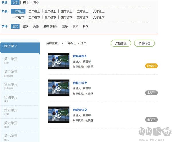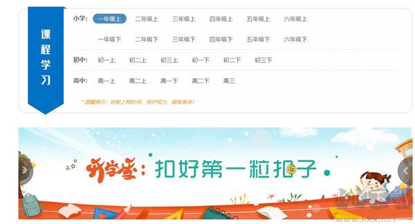 用戶在這里點(diǎn)擊進(jìn)入下載后點(diǎn)擊該網(wǎng)頁進(jìn)入學(xué)習(xí)平臺(tái),然后選擇對(duì)應(yīng)的學(xué)習(xí)年級(jí)資源進(jìn)行學(xué)習(xí)。這里我們用一年級(jí)的課程試試看