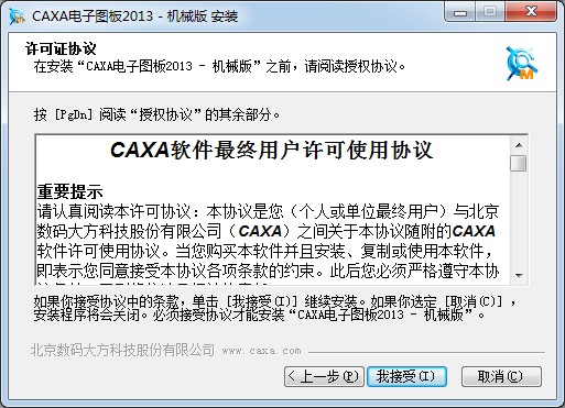在安裝“CAXA電子圖板2013 -機(jī)械版”之前,請(qǐng)閱讀授權(quán)協(xié)議。