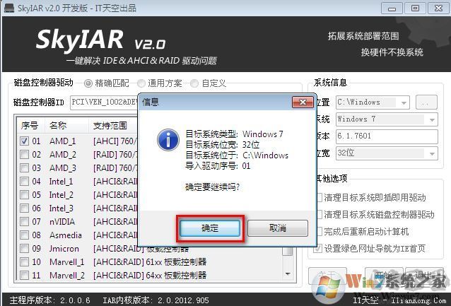 當(dāng)處于“精確匹配”模式(默認(rèn)模式)時(shí),軟件會(huì)根據(jù)系統(tǒng)類型列出適合當(dāng)前系統(tǒng)的IAR驅(qū)動(dòng)列表,并自動(dòng)檢測(cè)當(dāng)前磁盤控制器的硬件ID,最后根據(jù)磁盤控制器ID自動(dòng)在IAR驅(qū)動(dòng)列表中選中可用驅(qū)動(dòng)。如上圖,筆者的PC為Intel Z68主板開SSD+HDD混合RAID模式,并在同時(shí)使用板載的Marvell 91xx磁盤控制器,軟件檢測(cè)出兩者的ID并自動(dòng)選取了匹配驅(qū)動(dòng)。之后,點(diǎn)一下“開始”按鈕,驅(qū)動(dòng)導(dǎo)入就開始自動(dòng)執(zhí)行了。