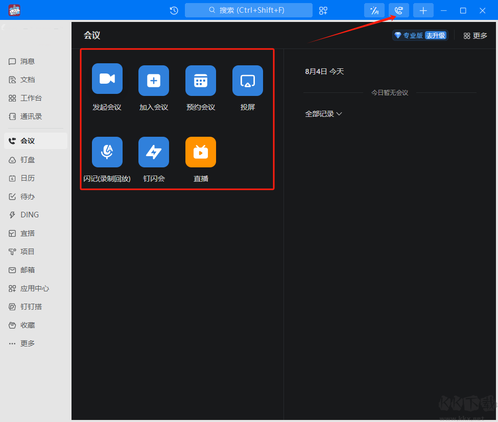 打開釘釘電腦版并登錄,直接點(diǎn)擊發(fā)起會(huì)議。