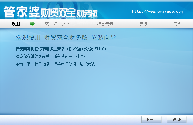 歡迎使用財(cái)貿(mào)雙全財(cái)務(wù)版安裝向?qū)?br />