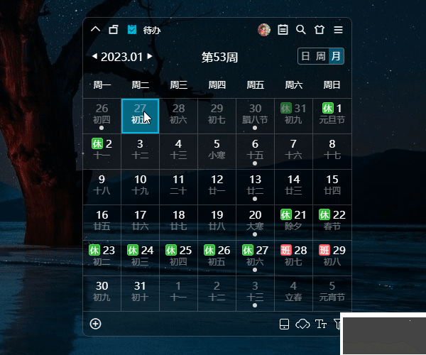 當(dāng)前版本,日歷模式可切換為日/周/月視圖。