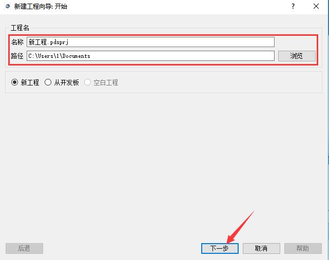 2、進入新建工程窗口,先設置項目名稱和存儲目錄,點擊【下一步】,