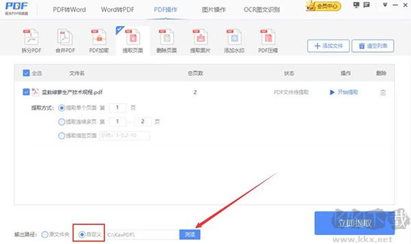 5、如果PDF提取頁面后的輸出路徑需要更改的話,就點(diǎn)擊極光PDF閱讀器中的“瀏覽”按鈕。