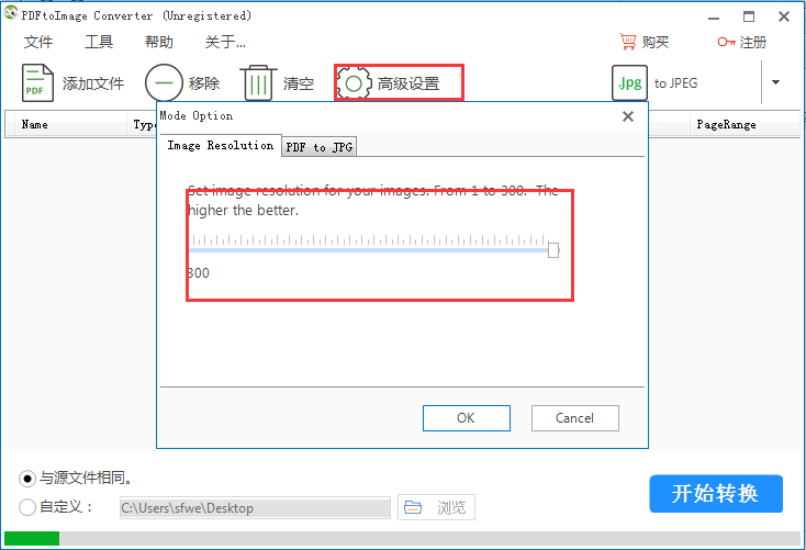 (2)點(diǎn)擊高級(jí)設(shè)置對(duì)轉(zhuǎn)換的質(zhì)量進(jìn)行調(diào)整