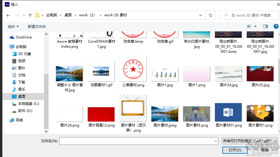 3、然后在打開的窗口中選中需要的素材導(dǎo)入就可以了