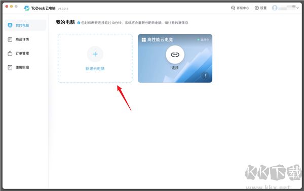1、打開云電腦客戶端后,點(diǎn)擊新建云桌面