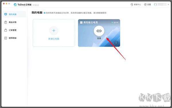 4、在我的電腦,可以查看到自己已購(gòu)買的云電腦,點(diǎn)擊連接按鈕即可開啟云電腦