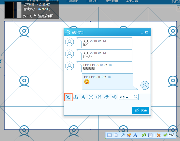 右下角還有聊天窗口,可以發(fā)送文字、表情,也可以分享文件,