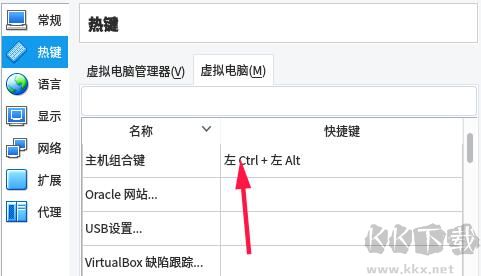 2、在設(shè)置窗口中,點(diǎn)擊左側(cè)的【熱鍵】選項(xiàng),這里可以看到默認(rèn)用【右Ctrl鍵】釋放鼠標(biāo)。