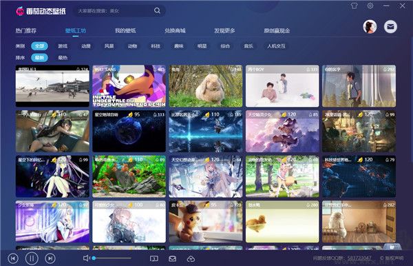 進入壁紙工坊頁面,可查看最新的動態(tài)壁紙圖,也可以選擇類別查看動態(tài)壁紙分類,雙擊或單擊可放大壁紙閱覽。