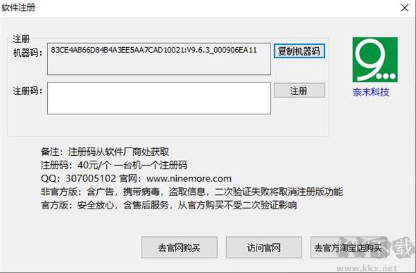 6、點(diǎn)擊“注冊(cè)”,可以獲取正版使用權(quán),獲取更多功能。聯(lián)系客服付款后,發(fā)送注冊(cè)界面中的機(jī)器碼給客服,獲取注冊(cè)碼,填入注冊(cè)碼,確定后即可注冊(cè)