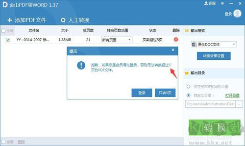 ② :“轉(zhuǎn)換頁(yè)數(shù)范圍”功能只有VIP會(huì)員才能使用,意味著還是只能轉(zhuǎn)換前面5頁(yè)。