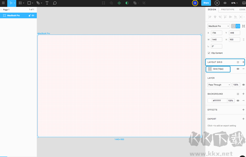 2、光有白底不方便排版,得加參考線輔助對齊。點(diǎn)右邊面板的加號,找到 LAYOUT GRID 里的網(wǎng)格(10px間距),系統(tǒng)會自動鋪滿整個(gè)畫布。