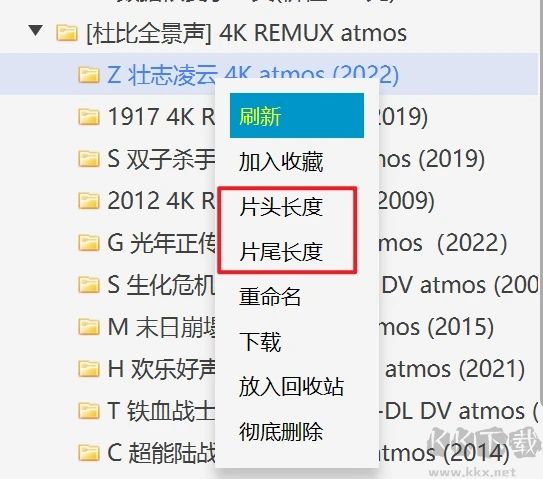 5、在文件夾列表上右鍵,可以設(shè)置片頭片尾的長(zhǎng)度,這樣在播放的時(shí)候就能自動(dòng)跳過(guò),在看連續(xù)劇的時(shí)候非常有用,文件夾與文件夾之間都能單獨(dú)設(shè)置。