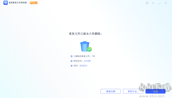 重復(fù)文件便根據(jù)自己的選擇完成刪除或移動(下圖以選擇永久性刪除為例)。