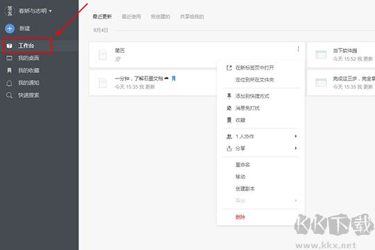 鼠標指向需要移動的文檔或表格,點擊右下角「設置」按鈕,選擇「移動文檔」。
