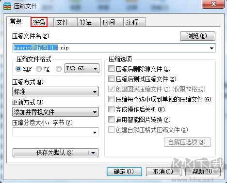 壓縮一個(gè)文件時(shí),在【壓縮文件】界面,點(diǎn)擊【密碼】標(biāo)簽,然后輸入密碼即可。
