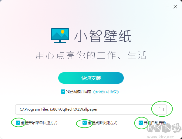 3、同意《安裝許可協(xié)議》,并可以更換安裝地址,桌面快捷,開(kāi)機(jī)自啟,菜單快捷方式等