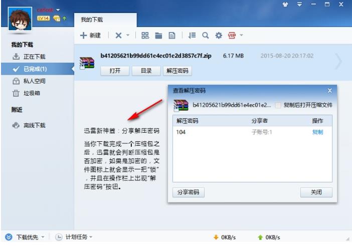 查看壓縮文件密碼功能。