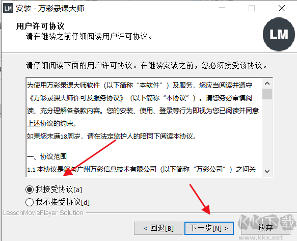 3、點(diǎn)擊我接受協(xié)議,點(diǎn)擊下一步繼續(xù);