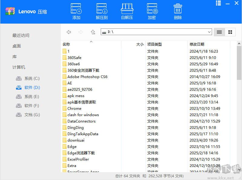 聯(lián)想壓縮是一款功能強(qiáng)大的文件壓縮軟件,可以幫助用戶快速進(jìn)行文件壓縮和解壓,支持大部分的文件格式,軟件還提供了壓縮、解壓、自解壓和加密解壓四種功能,而且這些功能都在一個(gè)界面,方便用戶選擇和使用。而且提供功能都對應(yīng)一個(gè)界面,操作也非常的簡單。還可以多種格式解壓,讓用戶可以輕輕松松的解壓和壓縮文件。需要的朋友快來下載試試吧!